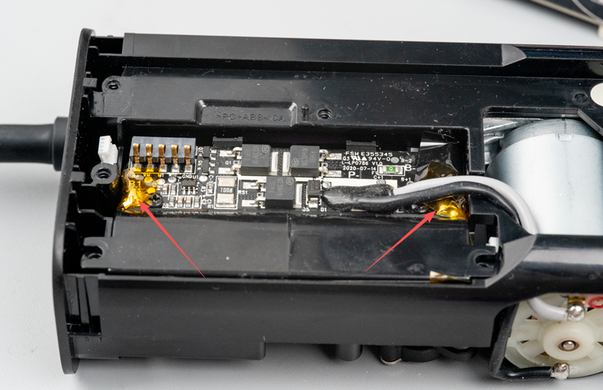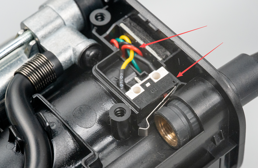 结合引出线的实际连接,不难看出另外两个信号连接到了用来检测气嘴有没有插入到充气宝的微动开关上。