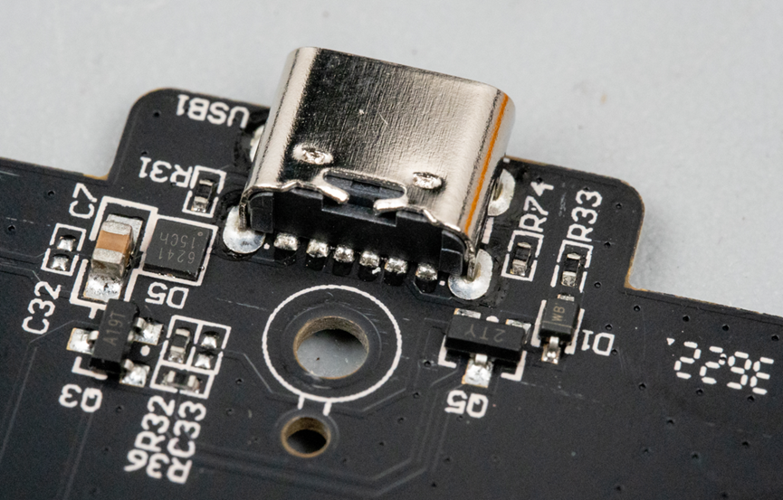 充电口采用了一个6脚的Type-C接口。这个板子的制造日期是22年第36周。