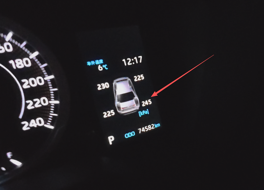 拆解之前先给它充满电,然后下去在车上比划一下,毕竟是骡子是马,要先拉出来溜溜。刚好我车的右后胎压已经低到130kPa了。