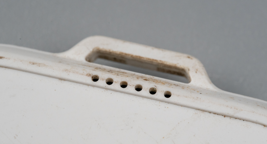 最上面的挂绳孔下面有一排8个孔,应该是扬声器孔。