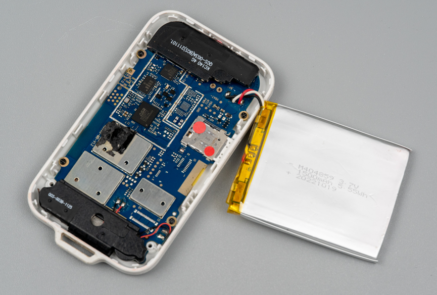 去掉电池一看,这玩意内部设计风格居然有点像手机的感觉,当然是几年前的那种手机内部构造。其实想想也是,插卡了,可以远程进行一些操作,如果加一个屏幕,可不就是个手机吗。