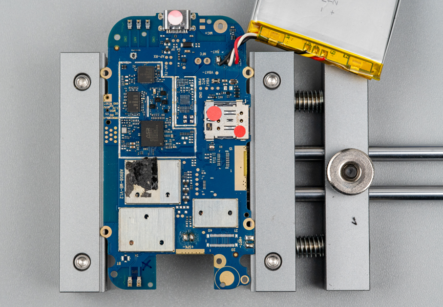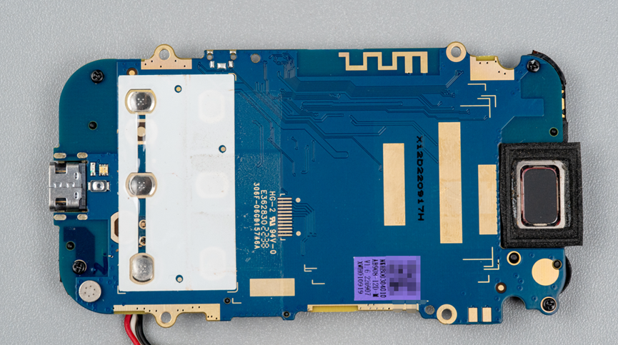 接下看看电路板。电路板两端都有黑色塑料配件,上面都有贴FPC软天线。