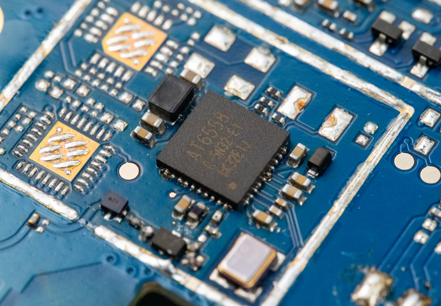 其中一个屏蔽壳下面是AT6558R-5N32,这是来自杭州中科微的一款高性能BDS/GNSS多模卫星导航接收机SOC芯片,片上集成了射频前端,数字基带处理器,32位的RISC CPU,电源管理功能。也就是说这颗芯片实现的功能就是GPS定位,当然GPS是通俗叫法,实际上它也支持我国的北斗卫星定位和俄罗斯的GLONASS,可以实现多系统联合定位。