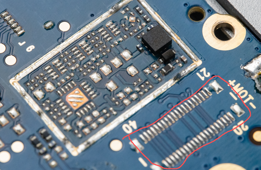 另外有一个屏蔽壳下面只贴了一个芯片,但是它旁边有一个40Pin的双排座子未焊接,我猜测这个是连接屏幕或者摄像头的。