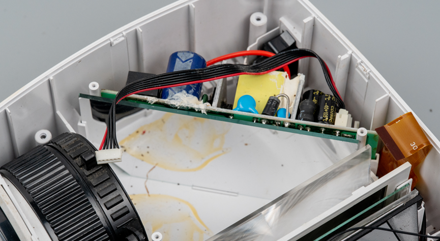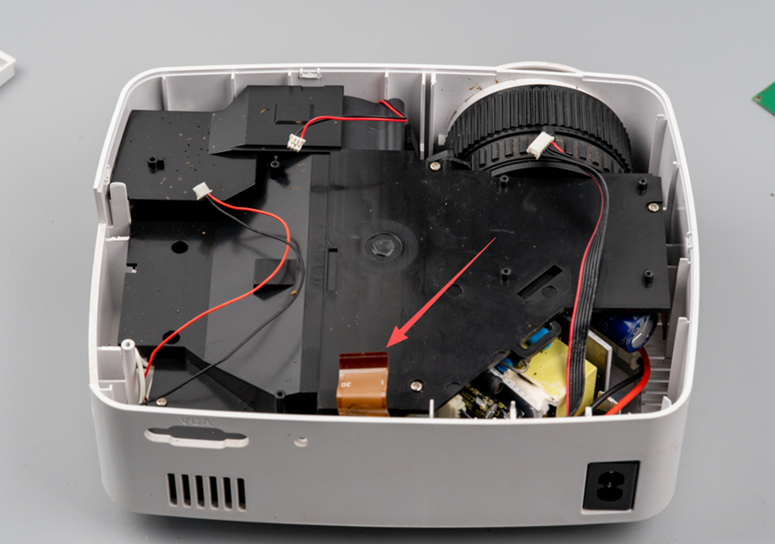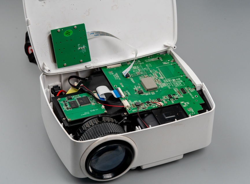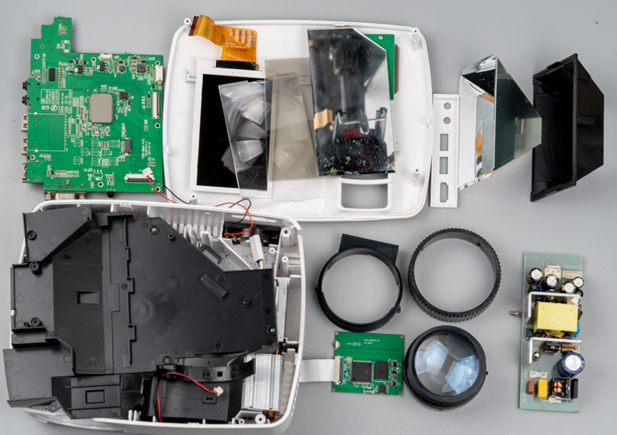 以上是整个投影仪的所有配件,比较简单,损坏原因比较明确,维修价值也比较低。