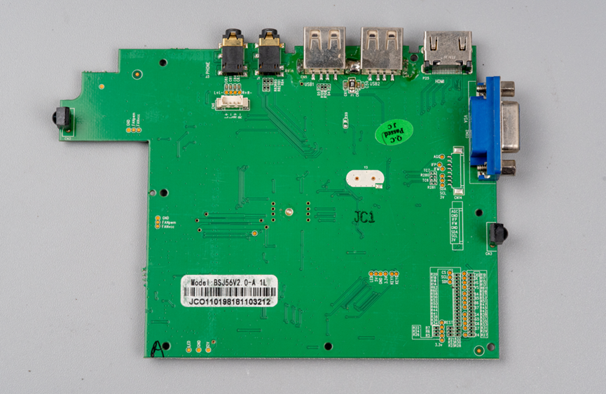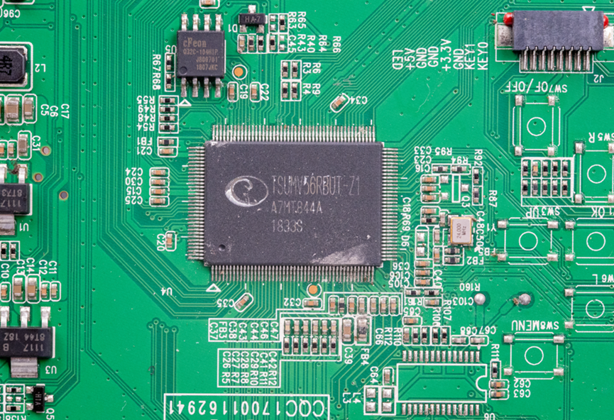 去掉散热片之后看到这个芯片的型号是TSUMV56RBUT-Z1,这是来自晨星半导体的模拟电视芯片。