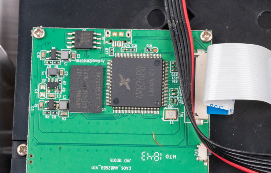 所以实际上这个通过排线连接的板子,上面的主控型号是AM8268W,来自炬力北方微。