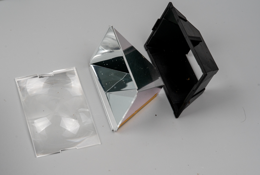 光源前面还有光杯和一个黑色的罩子,以及另一个透明镜片。