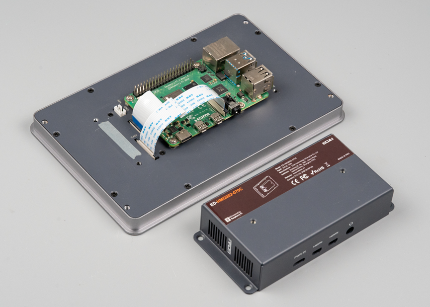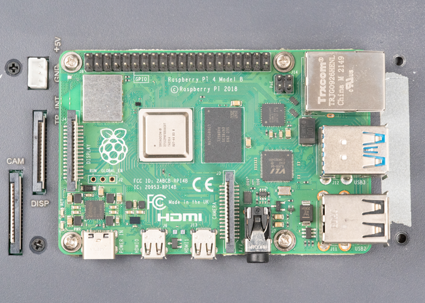 这款工业平板采用铝合金CNC外壳,内置树莓派4B核心板(博通BCM2711四核处理器),配备7寸电容触摸屏,接口丰富(USB、千兆网、双HDMI输出等)。拆解可见树莓派原板与独立驱动板通过FPC连接,结构兼顾散热与防护,实为工业封装的树莓派方案。