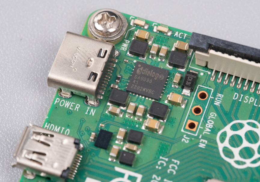 Type-C供电输入口旁边是电源管理芯片。采用了Dialog的DA9090。看起来有思路DC-DC输出。