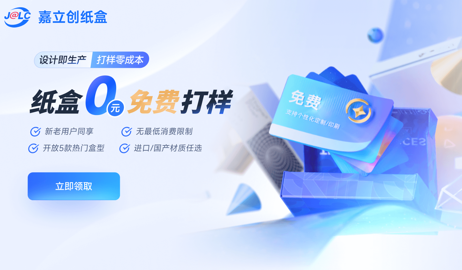 嘉立创纸盒(https://www.jlc-zh.com/)实现从在线设计、报价、下单、生产到交付的全流程数字化管理。对于处于品牌初创期、产品试销期,或需要多SKU 小批量生产的商家而言,嘉立创纸盒对“小单” 的高度友好、公开透明的定价,再加上免费打样的保障,能极大降低创业和生产中的试错成本与库存压力,成为连接产品“从 0 到 1” 创新阶段与规模化生产之间的理想桥梁。