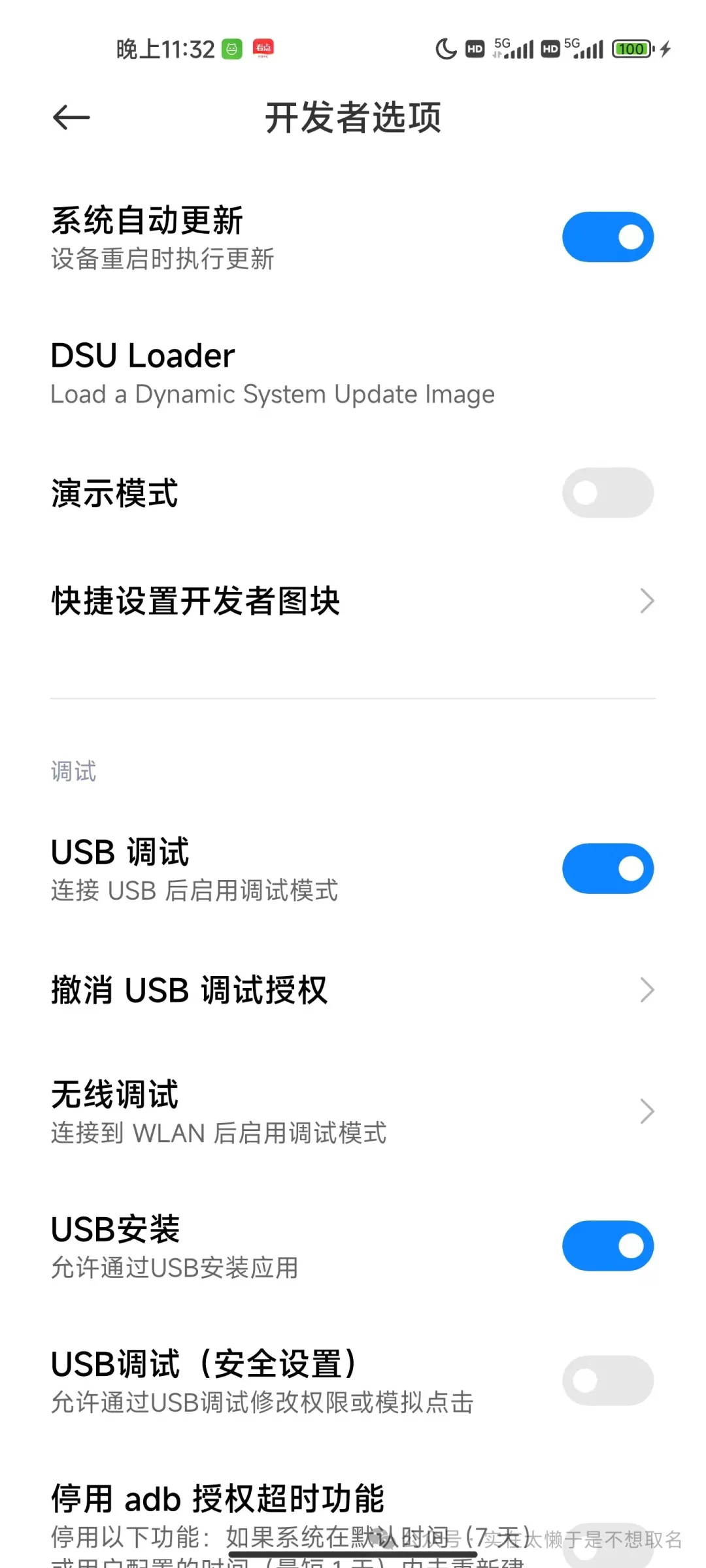 之后开启USB调试和USB安装。