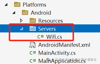 接着在Playforms分平台中,添加文件夹分类我们的文件,添加Wifi的类,我们在其中实现我们的代码。