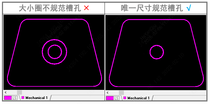 3)同一层开孔有大圈和小圈重叠的,只认小圈不认大圈;
