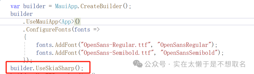 然后,最最重要的,在MauiProgram.cs中,添加初始化语句,这句话卡了我四五天!!