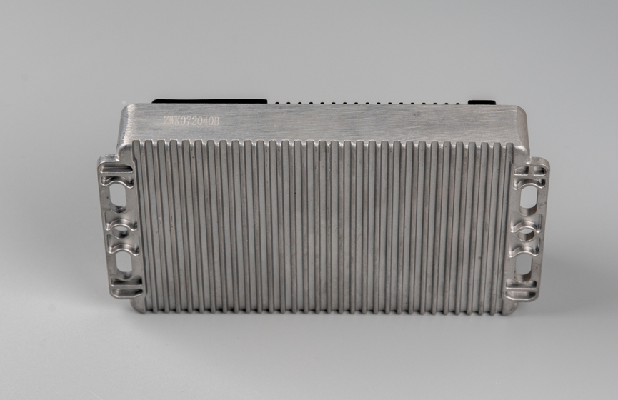 这款控制器的型号是ZWK072040B。铸铝外壳,底部有散热鳍片,两侧有安装耳。