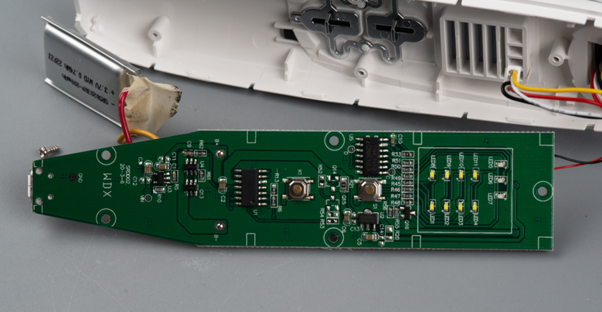 板子上通过焊接线引出了一个振动马达,估计是通过振动来产生按摩效果。