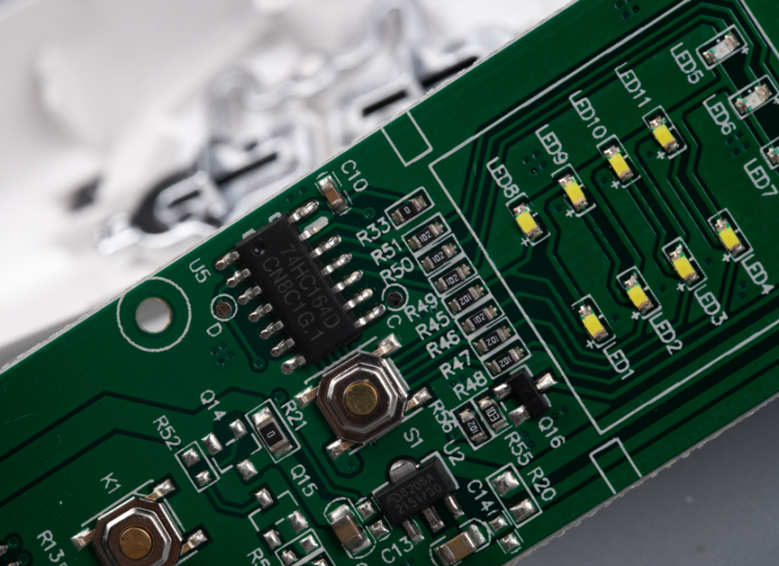 一颗74HC164D用来驱动上面这些LED指示灯,估计这些指示灯是用来指示模式和力度什么的。