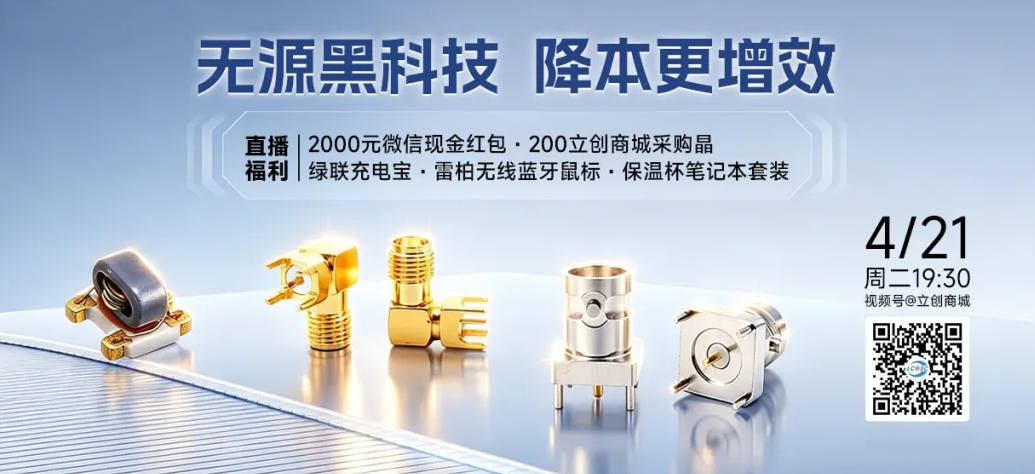 4月21日,立创商城联合成都恒利泰科技,打造射频无源器件专场直播,用硬核国产方案、现货选型指南、定制化解决方案,帮你真正做到降成本、提效率、稳供应!