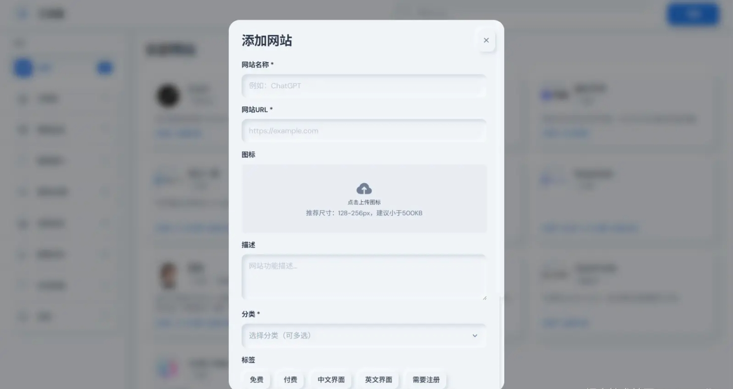 - ✅ 图片上传:支持上传网站图标(存储到IndexedDB)