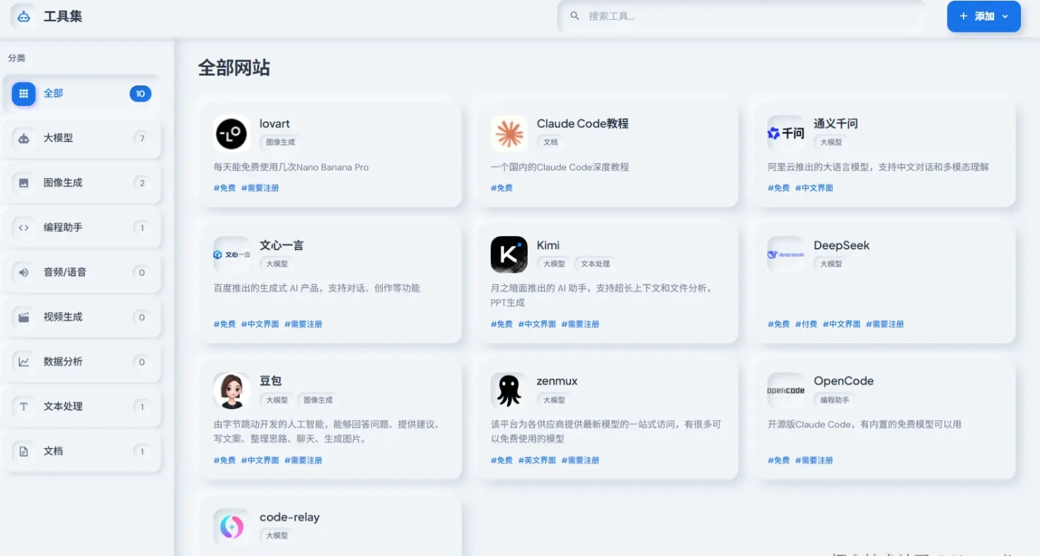 - ✅ 搜索功能:支持按网站名称、描述、URL搜索