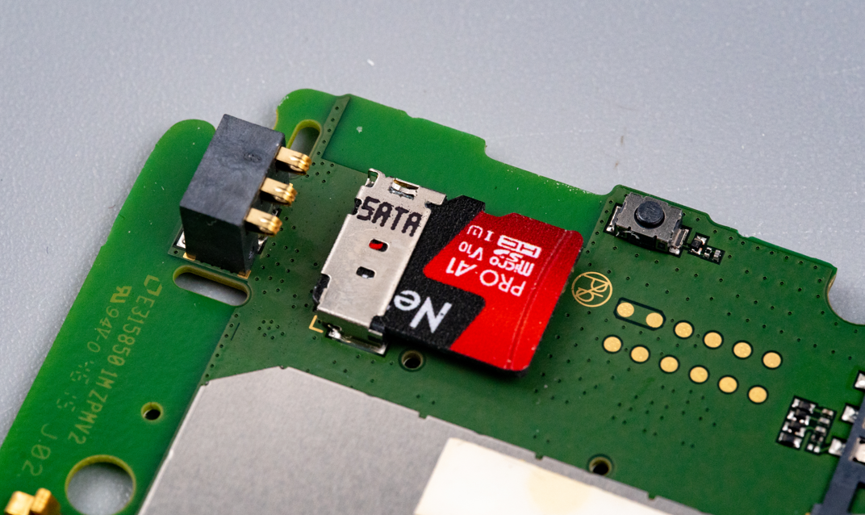 这个SD卡的安装座,现在用的也很多。我找了个SD卡装上去很舒服,但是它这个座子比较高,本身是为了安装上中框之后,从电池仓就可以完成插卡操作。