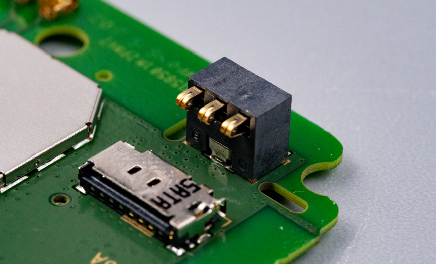 电池触点高度更高,这样可以保证装上中框之后,电池安装进去刚好能良好接触。