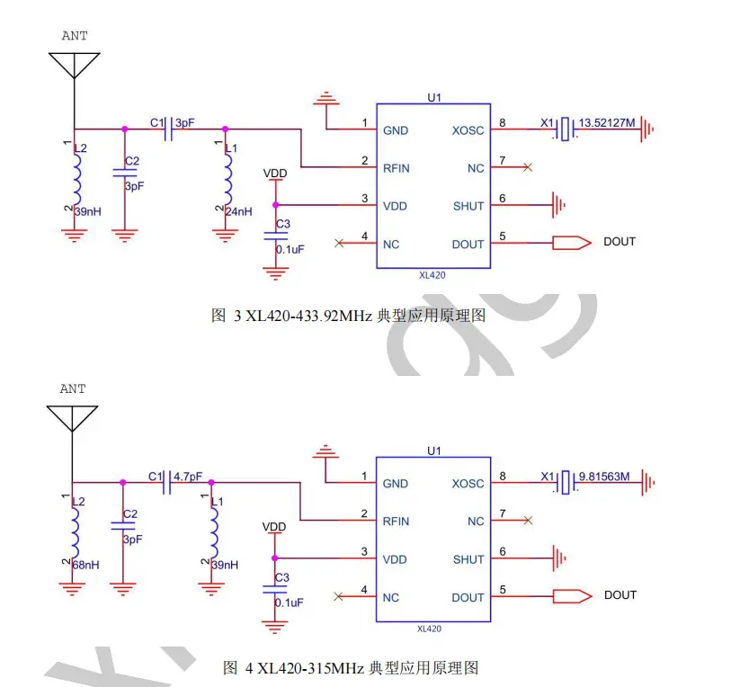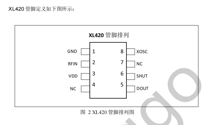 XL420 是一款低功耗、高性能、无 AGC 外接电容、灵敏度达到-108dBm、工作在300MHz-480MHz 频率范围内的 OOK 射频接收器;真正意义上的“天线输入,数据输出”的即插即用型单片集成电路器件;具有 2.5V – 5.5V 较宽的输入电压范围,最大支持 10 Kbps的数据率传输,采用 SOP-8 封装类型。