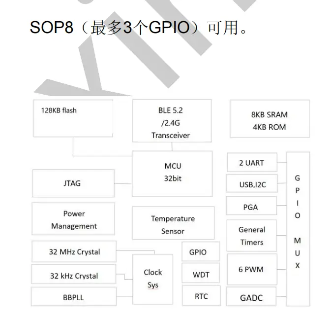GPIO:最多3 个(SOP8 封装),支持深度睡眠唤醒。