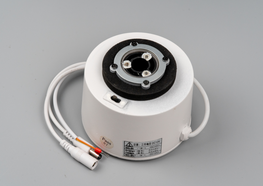 这个云台的供电电压是12V,通信采用RS485,另外还有一路12V电源输出。一根线从格兰出来之后分成三根线,分别是DC供电头、DC输出头、RS485信号线,看样子是可以级联的。