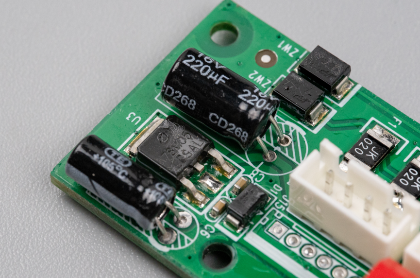 板子上采用了一颗DPAK封装的7805作为线性降压器,用来把12V降压到5V。