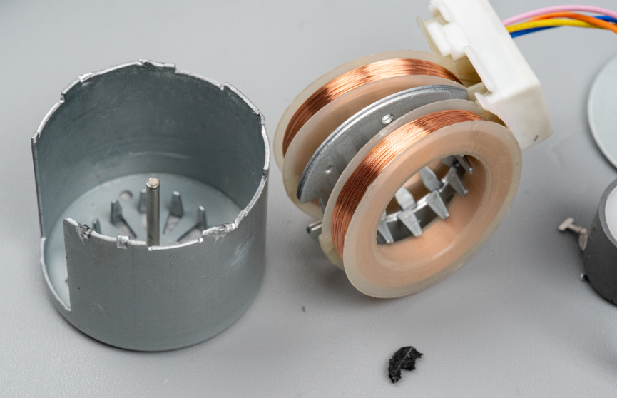 拆开之后内部倒是不复杂。一个电路板,一个步进电机。