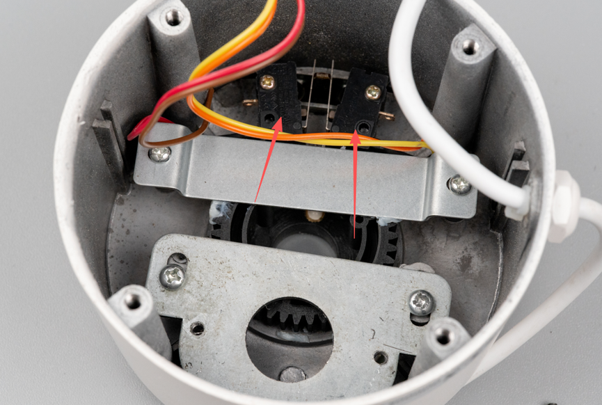 再看看壳子里,还有两个微动开关,这显然是用来限位的。