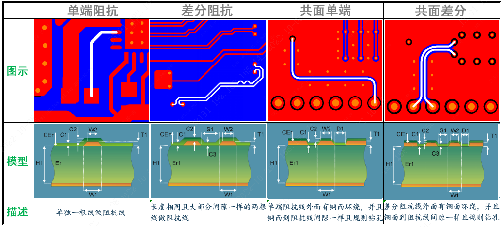 通过阻抗匹配可有效减少、消除高频信号反射。常规的阻抗线主要分为如下四种: