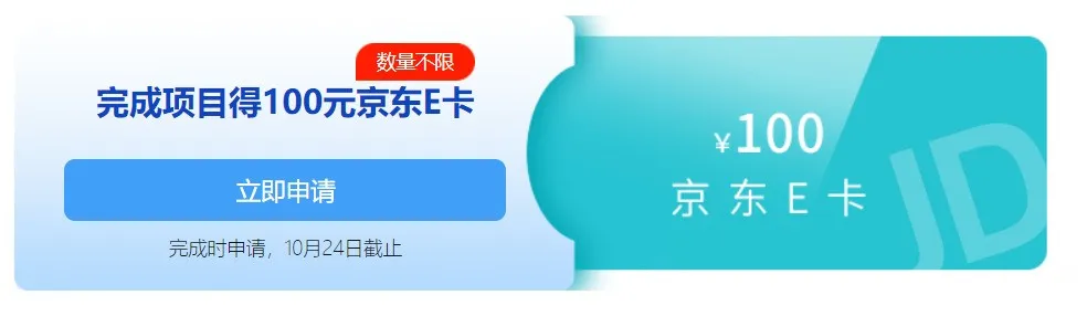 如果你完成了上一阶段的项目设计,那恭喜你将可以触发项目完成奖励!你可以在完成项目时-10月24日期间,点击申请100元京东E卡奖励!