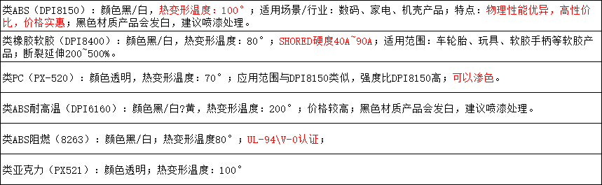 复模能制作的材质有:软胶,硅橡胶,透明PC,类ABS、POM、PP、PMMA、耐高温材料等,材料强度比3D打印优。