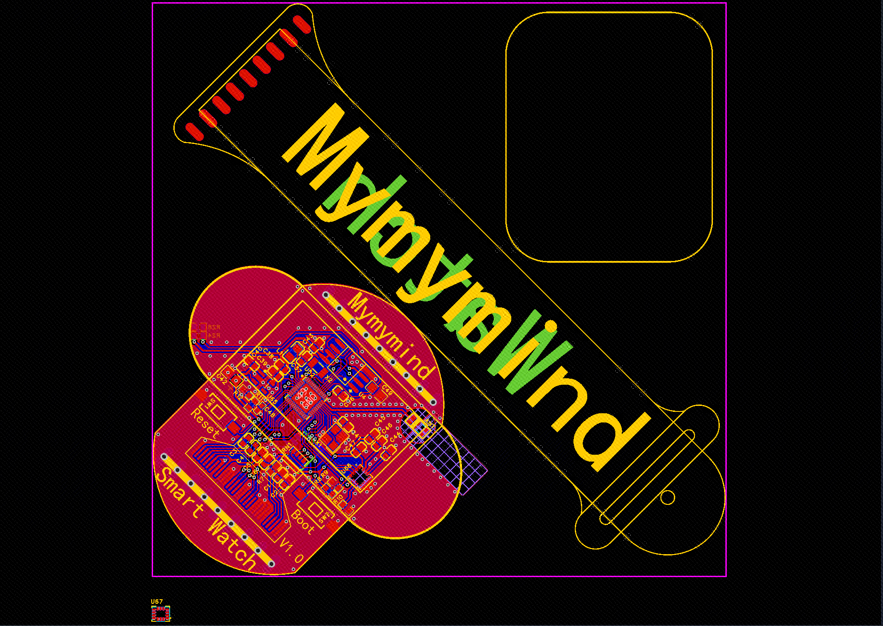 表带通过焊盘从背面焊接到表盘,铺铜挖空保证了蓝牙信号的传输质量