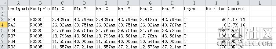 *Designator, Mid X ,Mid Y, Layer ,Rotation 是重要信息!