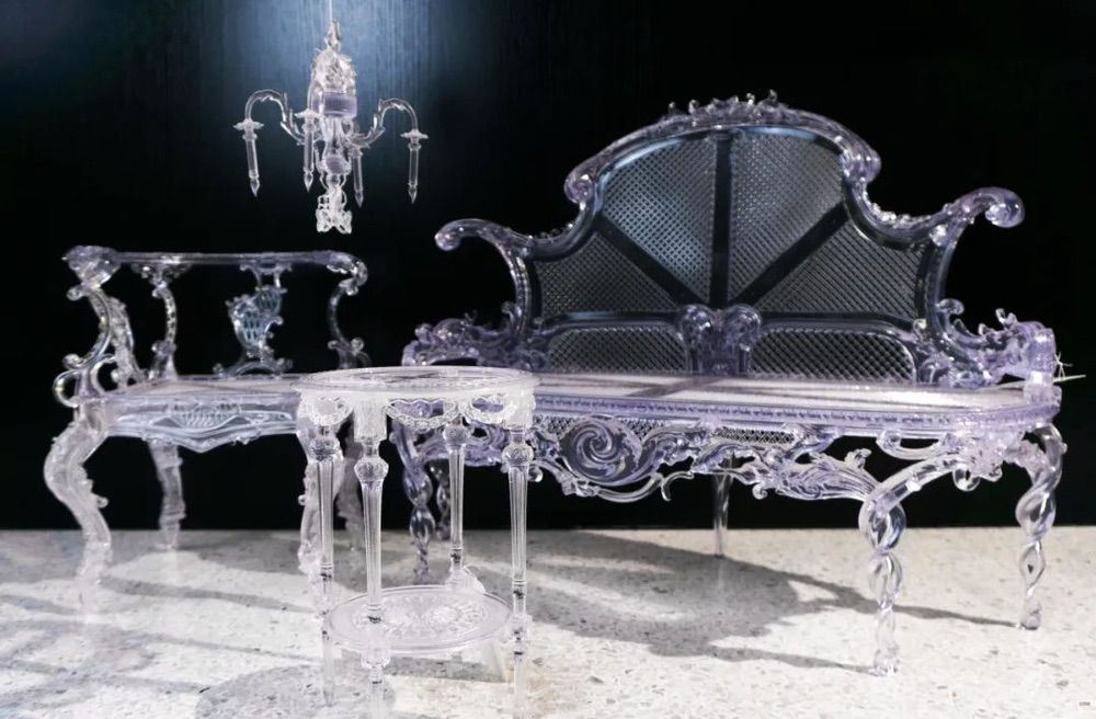 汲臻智能AMTC携手知名BJD艺术家Kika太太,运用3D打印技术打造高端定制微缩家具——水晶宫系列。该系列采用巴斯夫Forward AM透明树脂材料,以洛可可、哥特式等艺术元素为设计灵感,将流动多变的设计语言转化为精致细腻的模型。