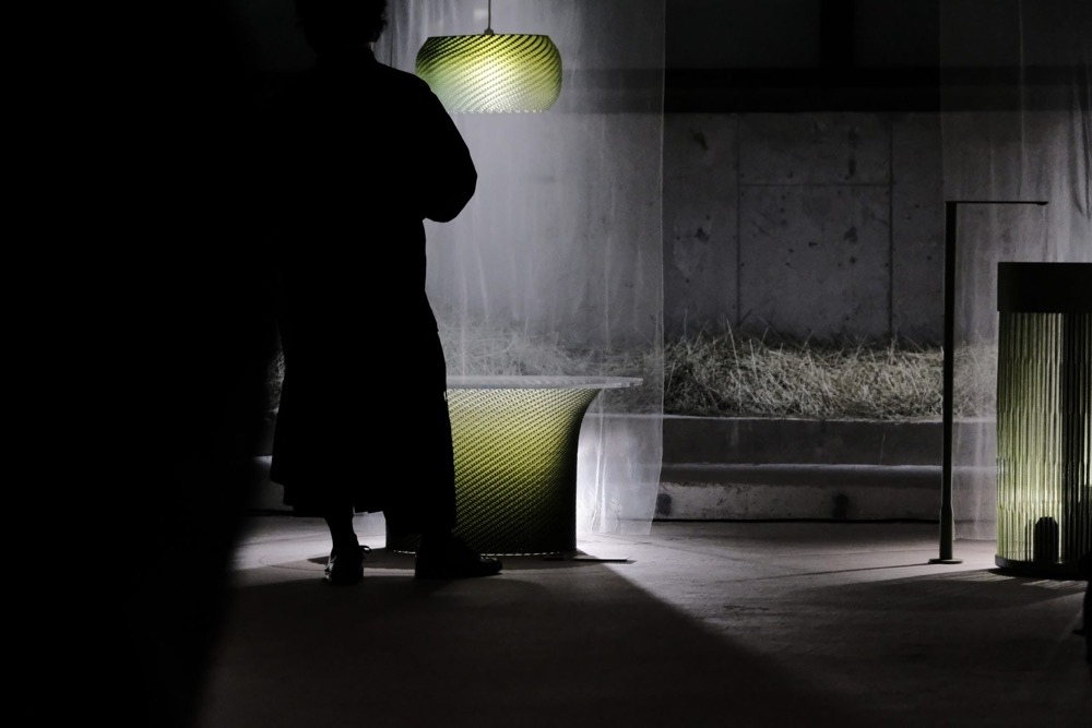 这些家具不仅环保,还融入了日本传统工艺技术的元素,如编织、格子或针织效果。产品包括灯罩、照明装置、桌子、凳子等,色彩多样,半透明特性使其独具质感。