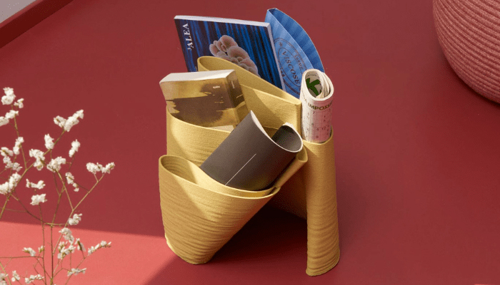 2023年11月,日本设计团体Honoka在Designart Tokyo展会上展示了创新的3D打印家具系列。该系列名为“榻榻米改造项目”,采用废弃榻榻米垫中的稻草与可生物降解树脂混合制成独特材料,并通过ExtraBold大型3D打印机制造。