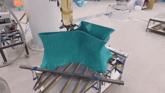 在项目中,他们采用了一种创新方法,通过递归算法生成精确弯曲的表面,并在打印过程中直接将染料加入喷嘴,实现了逐块局部着色,创造了独特的渐变设计。为克服混凝土抗拉强度弱的挑战,团队还研发了加固技术,结合高性能钢,使家具既耐用又美观。