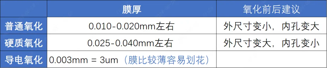 当工件需要和其他零件进行装配时,我们建议给氧化预留一定的余量空间。一般来说,零件增加的尺寸大致为生成氧化膜厚度的一半左右。