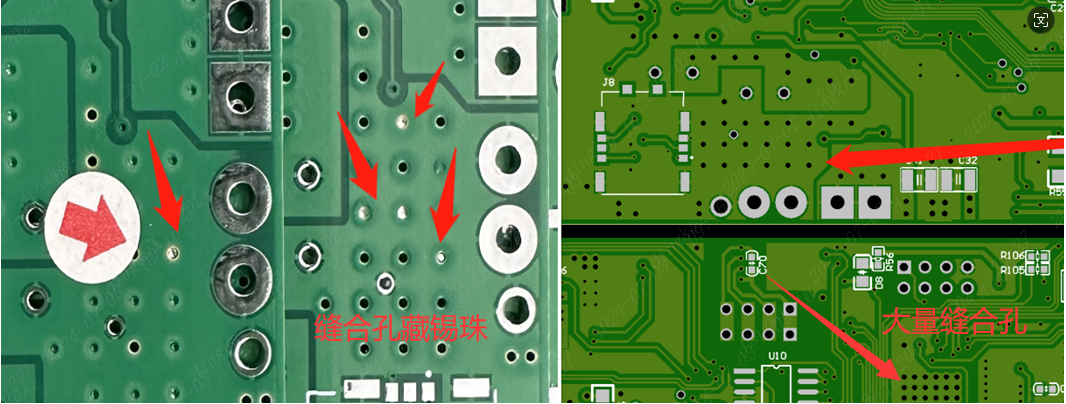 2. 如果钻孔是增加成本的话,则阻焊环节更是要命。无论是盖油还是塞油,过孔盖油工艺本身就会出现过孔发黄,那么多密集的过孔会导致下油更加困难,发黄位置的比例更加集中,对于铝片塞油亦是如此,过孔过于集中在某个地方,大大增加塞油的难度,特别是对于喷锡板,密集的过孔集中在某一块地方,这一块地方就不平整,特别容易有锡珠问题。