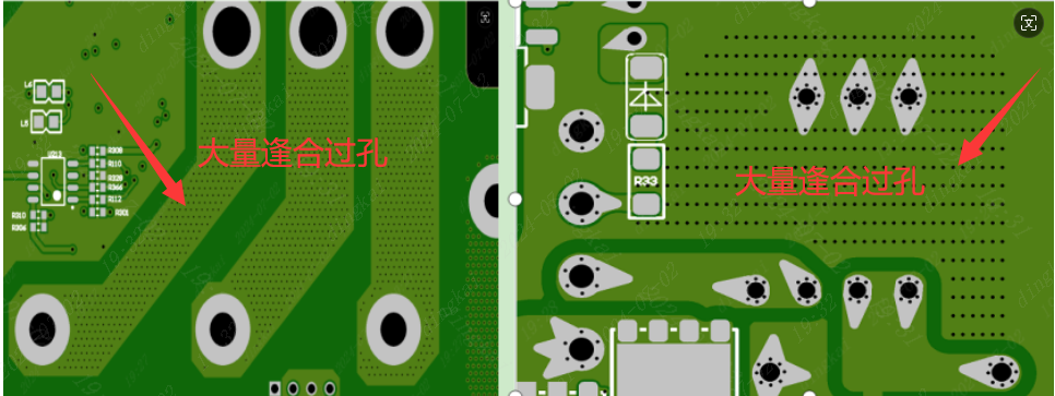 我们在设计PCB时,对于在大面积铜皮上打导电孔或在电流路上打孔打多一些导电孔是一个较为常规的线路需求,好处大家认为是:改善EMI/EMC,增加导热及电流等性能,但凡事不能过了,可能会直接导致PCB生产成本的增加及品质报损率的增高,所以不要图一时之爽,很多软件都有提供了过孔阵列功能,不用一秒钟几百个几千个过孔就出来了,所谓“软件一秒钟,产线累死人”就是这样来的。它主要的体现在: