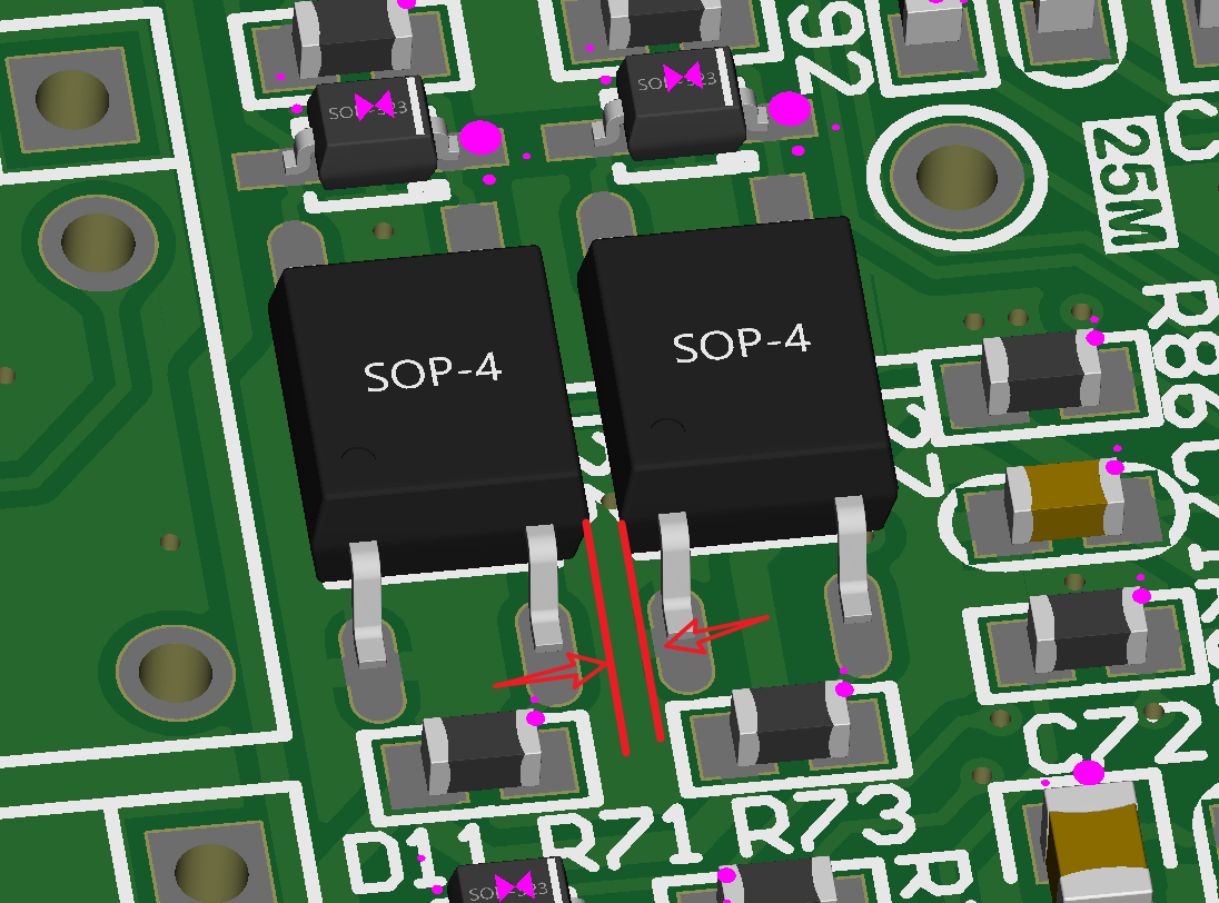 两个器件之间防干涉区域不能产生重叠,下图举例: