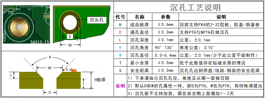 ■ 需要注意的沉孔事项: