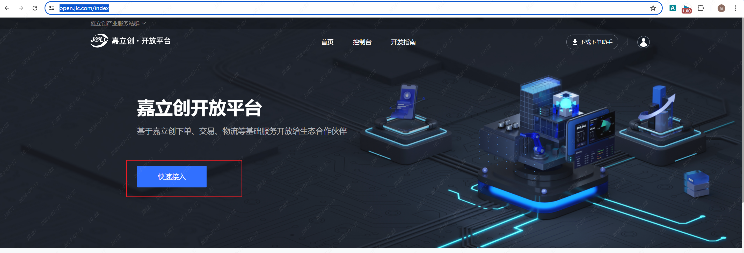 ① 打开网站: 点击这里打开嘉立创开放平台。 https://open.jlc.com