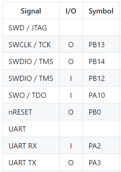 自行按照上面对应关系接线即可使用 SWD 调试和 UART 串口。