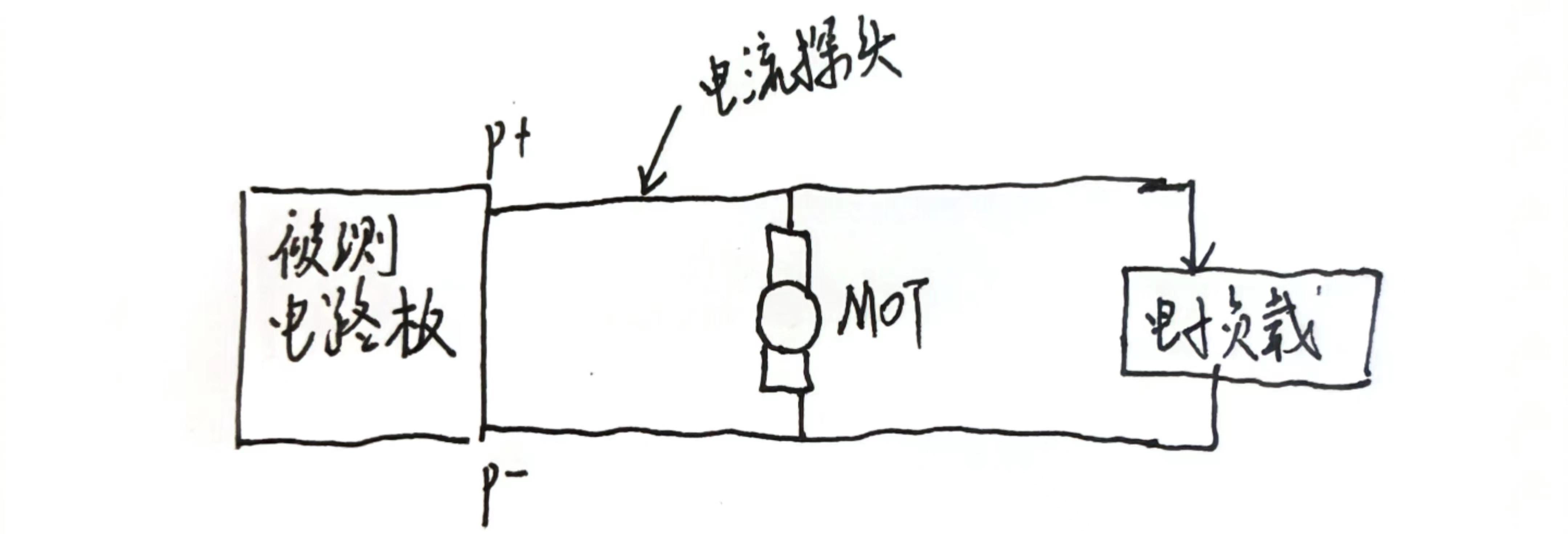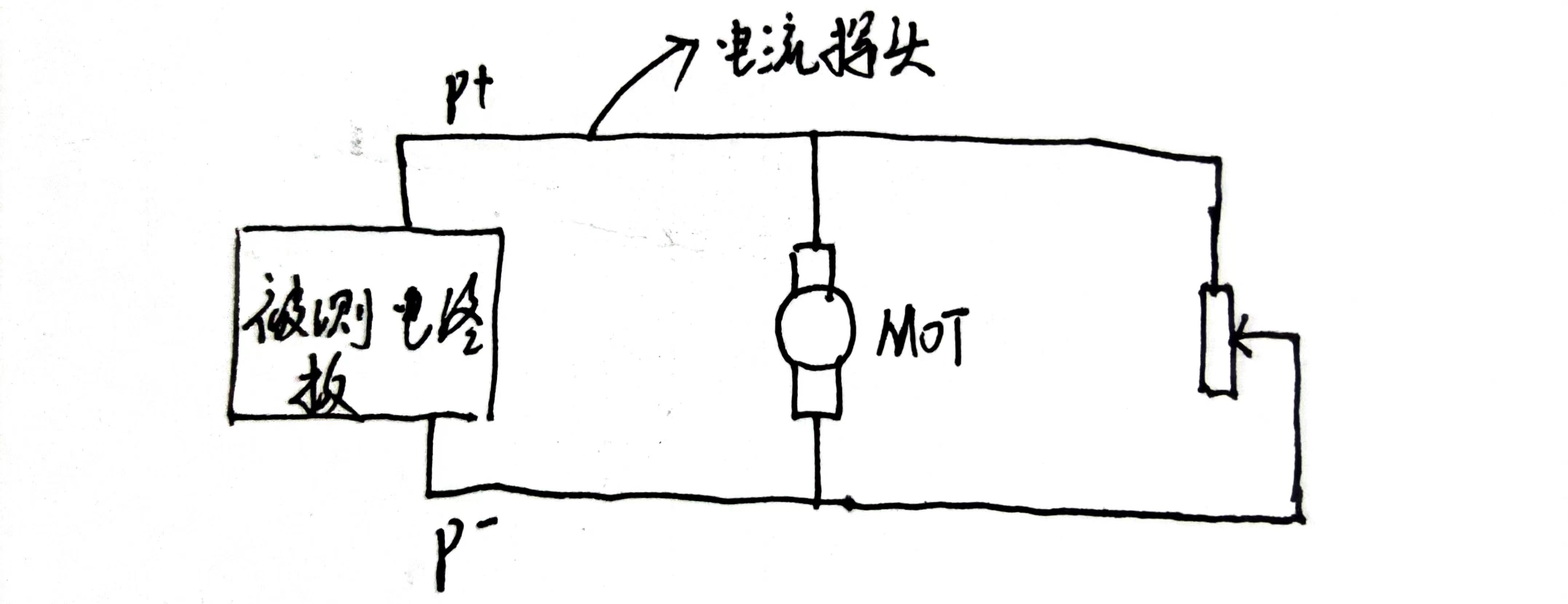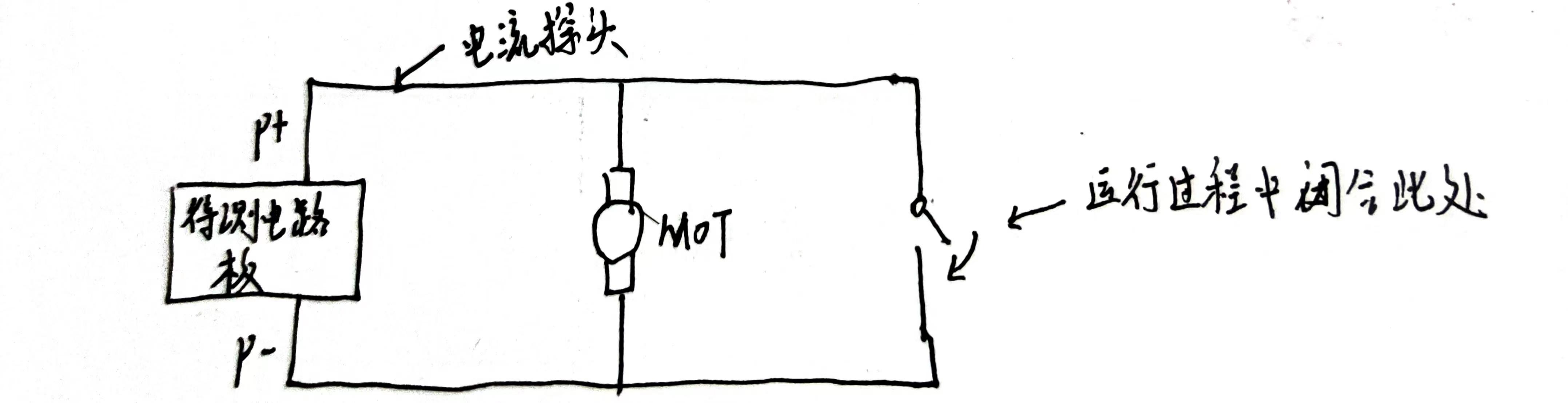 手里一充电式电动拖把需要做过流保护测试,用于验证产品过流放电时,软件是否能够及时动作,有效保护。计划采用的测试方法是用电子负载并联需要过流回路的电机,示意图大概为这样: